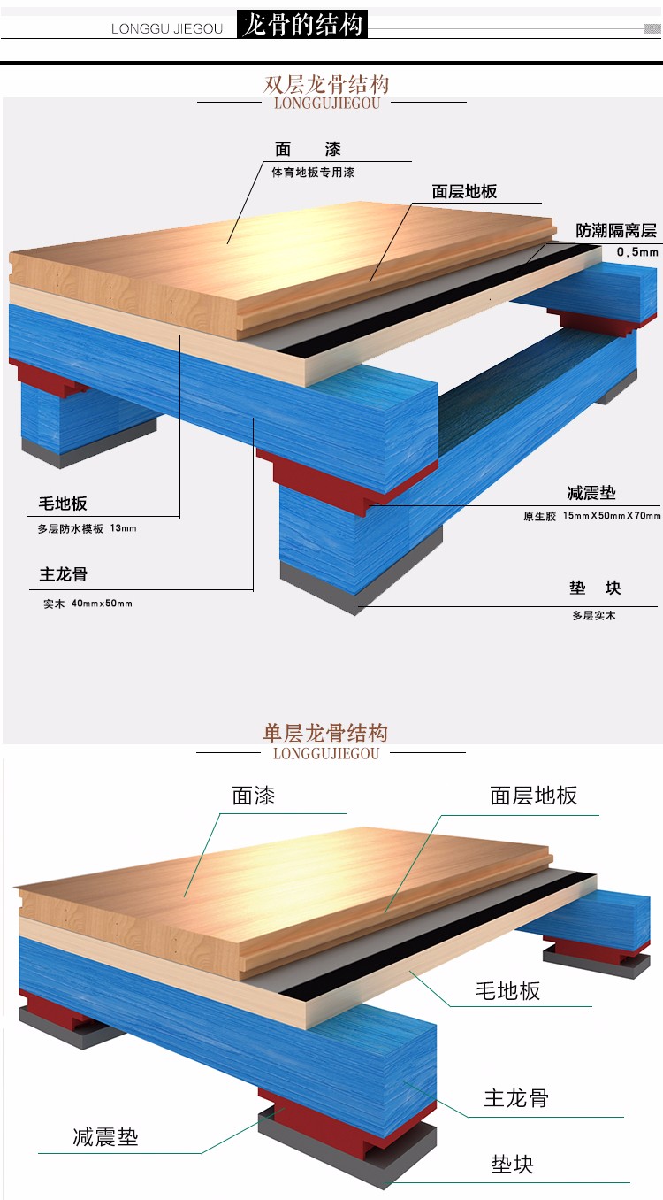 主輔龍骨結(jié)構(gòu)運動木地板
