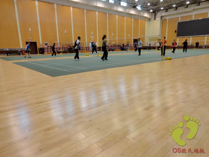 華美運動館運動木地板鋪設完工后朋友們在進行體育活動,地板鋪設效果。